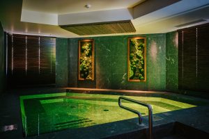 (Kylpylässä veloituksetta käytössä kasvo/muta/suolahoitoja, useita erilaisia saunoja, pore- ja uima-altaat, vesihieronnat, kylpylän edullinen snack-baari jne..)
