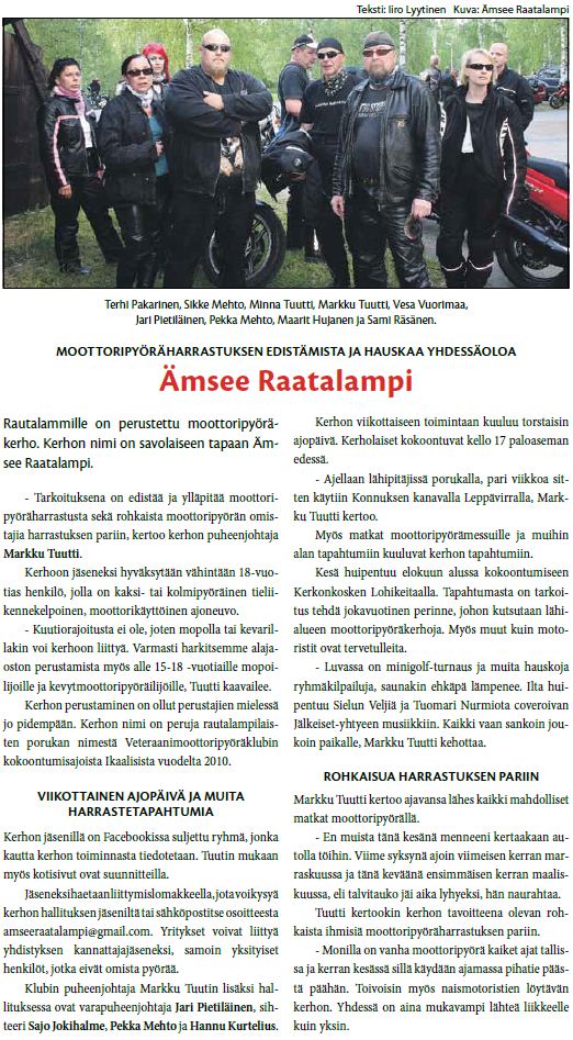 Juttu Rautalampi-lehdessä kesä-heinäkuu 2012: